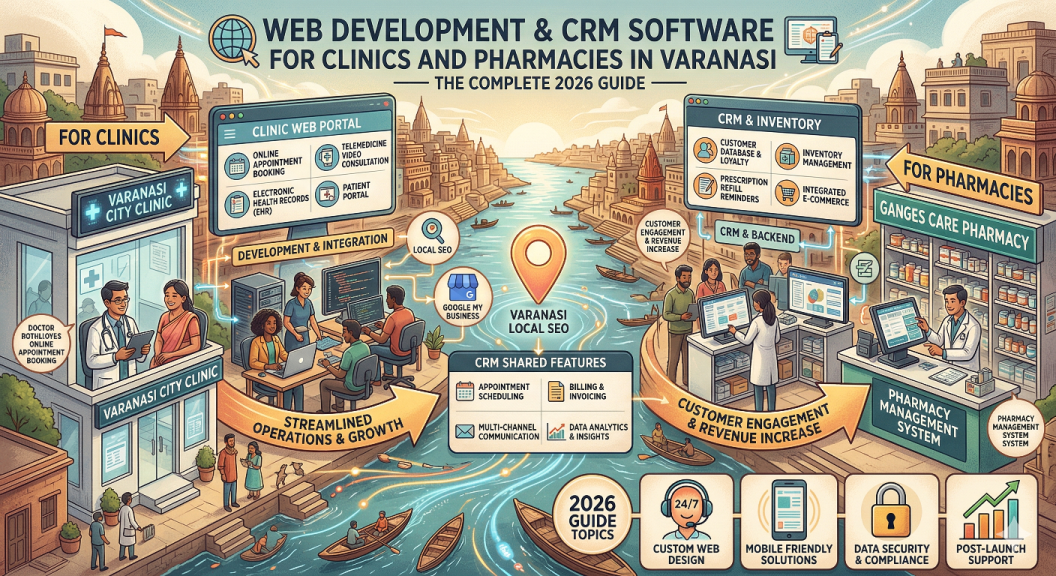 This guide is for doctors, clinic owners, pharmacy managers, and healthcare entrepreneurs in Varanasi who want to understand — concretely — how web development, app development, and CRM software can transform their practice. Not theory. Real systems. Real ROI.