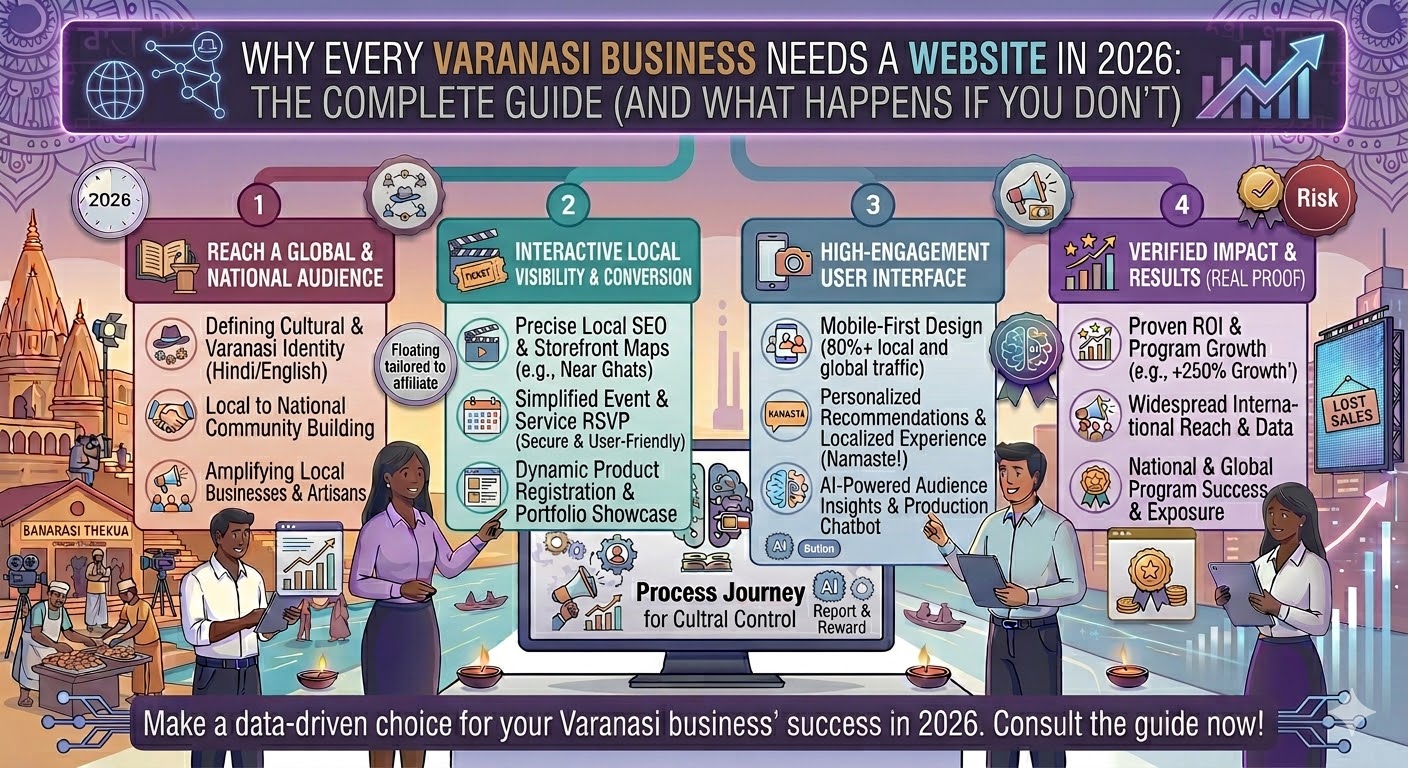 Varanasi is changing fast. It's a city of startups, boutique hotels, coaching institutes, handloom exporters, and local brands with big ambitions. In 2026, running a business without a website is like keeping your shop shutters half-closed all day.